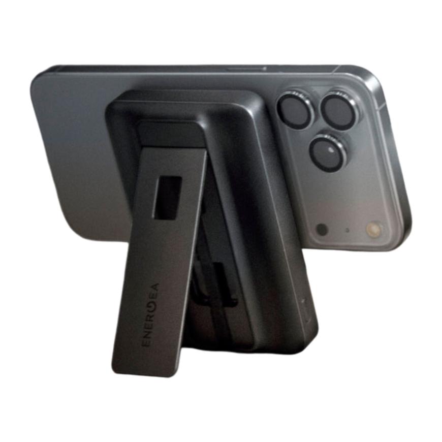 Это не просто внешний аккумулятор, это многофункциональный хаб: откидывающаяся ножка превращает его в подставку для телефона, удобно снимать кружки в ТГ, или для видеозвонка с коллегами. Кстати, под подставкой прячется встроенный USB-C кабель. Так что, даже если нужно подзарядить устройство без поддержки беспроводной зарядки, кабель носить с собой не обязательно. Спасает Energea MagPac Pro 35s не только когда садится аккумулятор, но и когда нет опоры для смартфона.