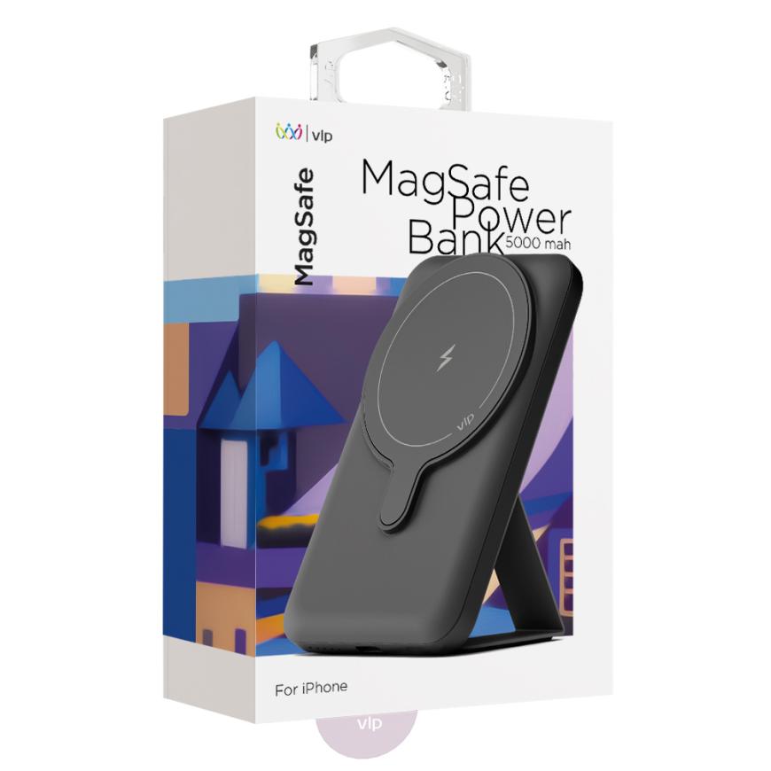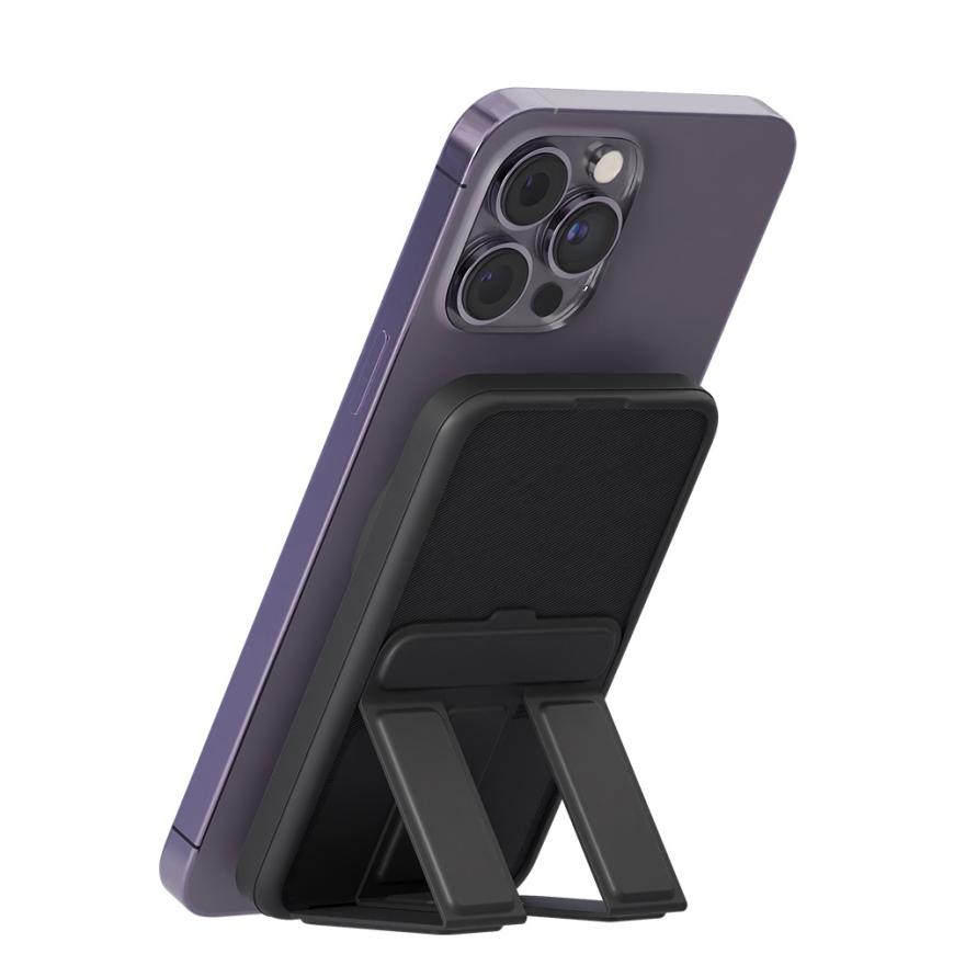 Корпус аккумулятора сделан из качественного пластика с Soft-touch покрытием, а мощные магниты надёжно удерживают его на устройстве или на совместимом чехле с поддержкой MagSafe. Встроенная складная подставка из эко-кожи с мягкой подкладкой позволяет устанавливать iPhone в портретном или альбомном положении. Подключив кабель, вы даже можете использовать данный аккумулятор в качестве магнитной док-станции. Максимальная выходная мощность встроенного беспроводного ЗУ MagSafe составляет 15 Ватт, а в комплект входит кабель USB-C.