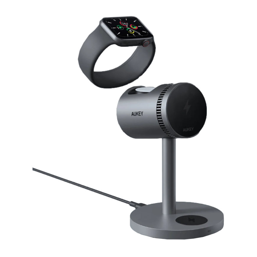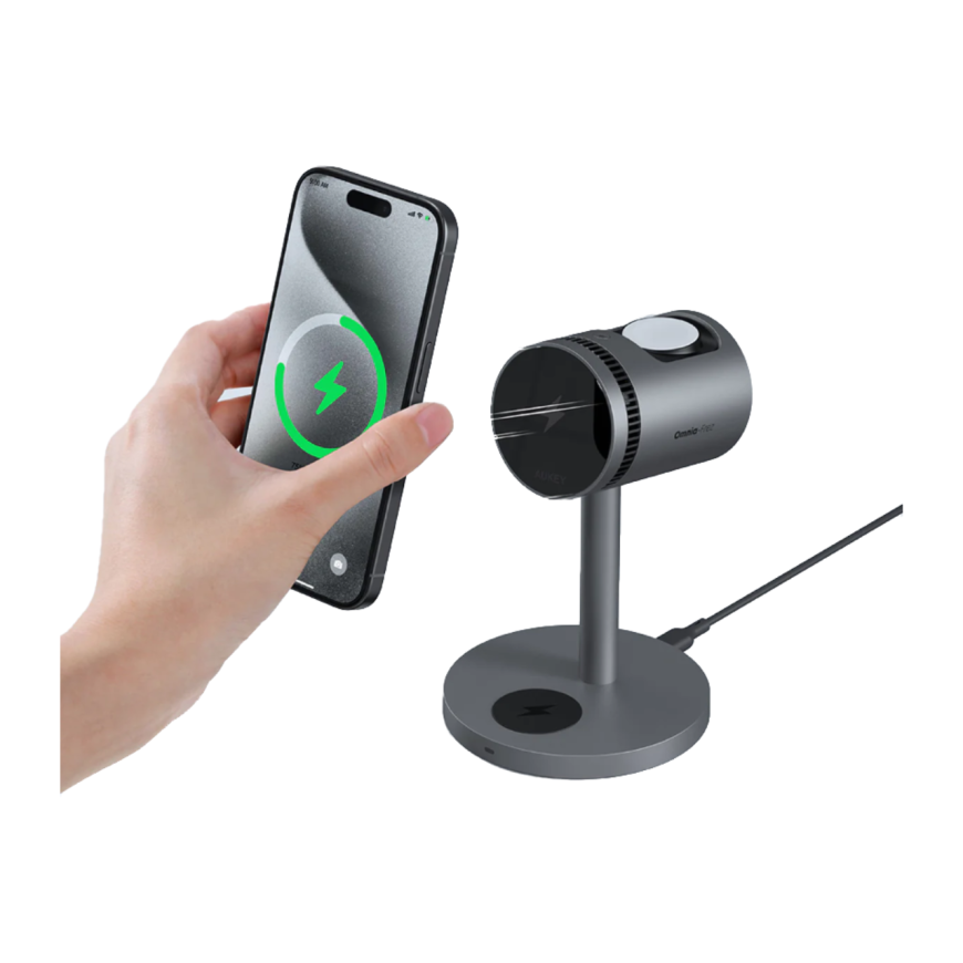 Никакой путаницы в проводах и разъёмах благодаря зарядной станции Aukey MagFusion Pro, созданной специально для зарядки сразу всех устройств – смартфона, наушников и смарт-часов. Стильная, функциональная, выполненная из металла и притягивающая внимание. Она освободит розетки от дополнительных адаптеров, занимая минимум места на столе или тумбе. А ещё в неё встроена система активного охлаждения, позволяющая продлить ресурс аккумулятора смартфона и даже немного ускорить зарядку.