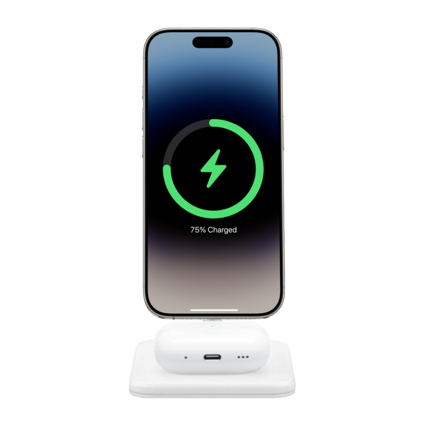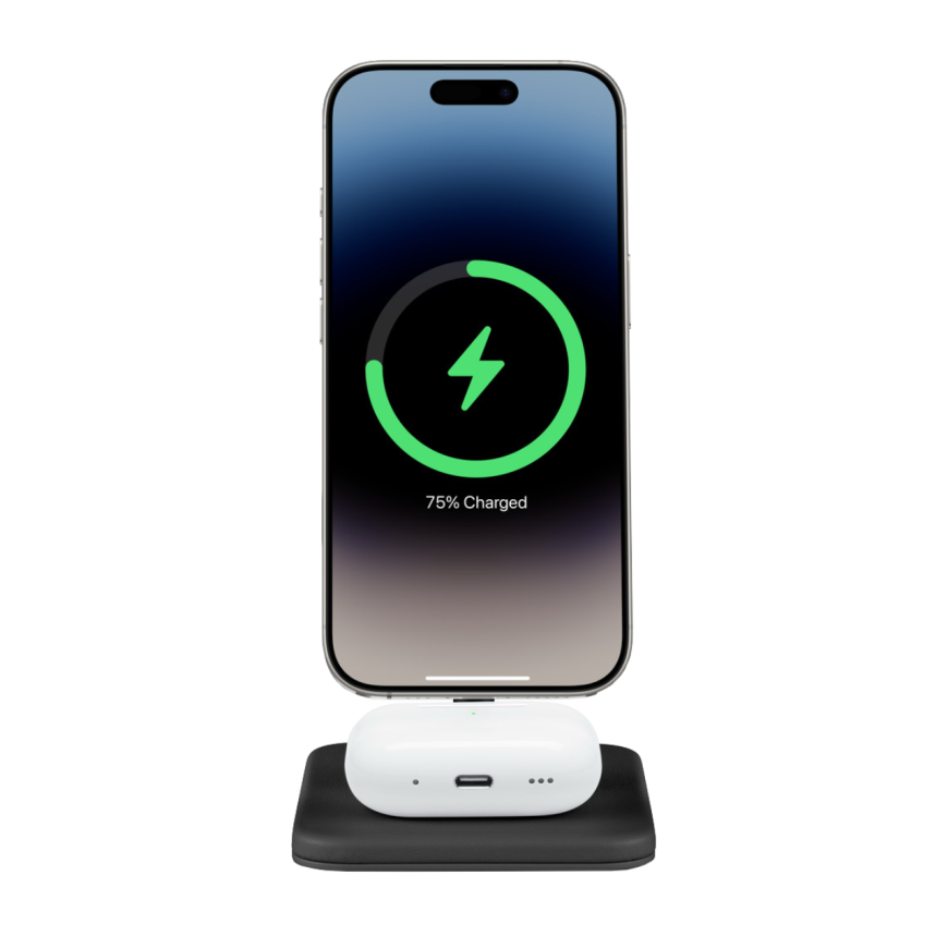 HiRise 2 Deluxe помогает одновременно подпитывать энергией сразу два устройства. На верхней части расположена магнитная платформа, которая надёжно удерживает iPhone благодаря технологии MagSafe. Это не только удобно, но и безопасно: усиленная магнитная фиксация предотвращает случайные прерывания процесса зарядки, даже если телефон слегка сдвинется или получит вибрацию от уведомлений. При этом станция поддерживает стандарт Qi2, что обеспечивает быструю зарядку мощностью до 15 Вт.