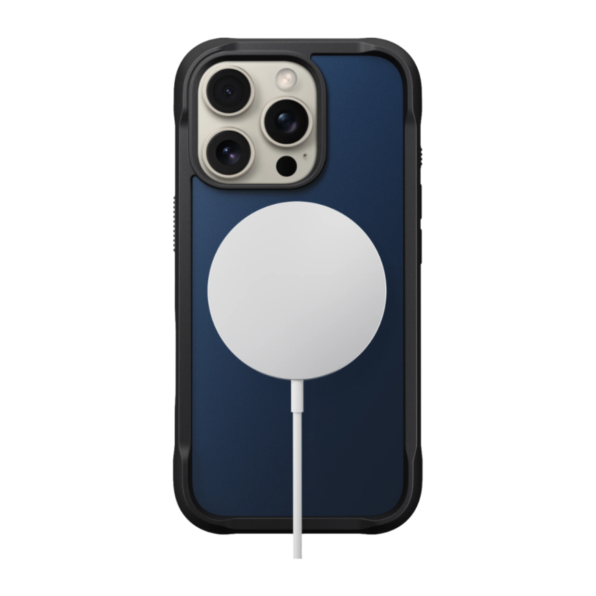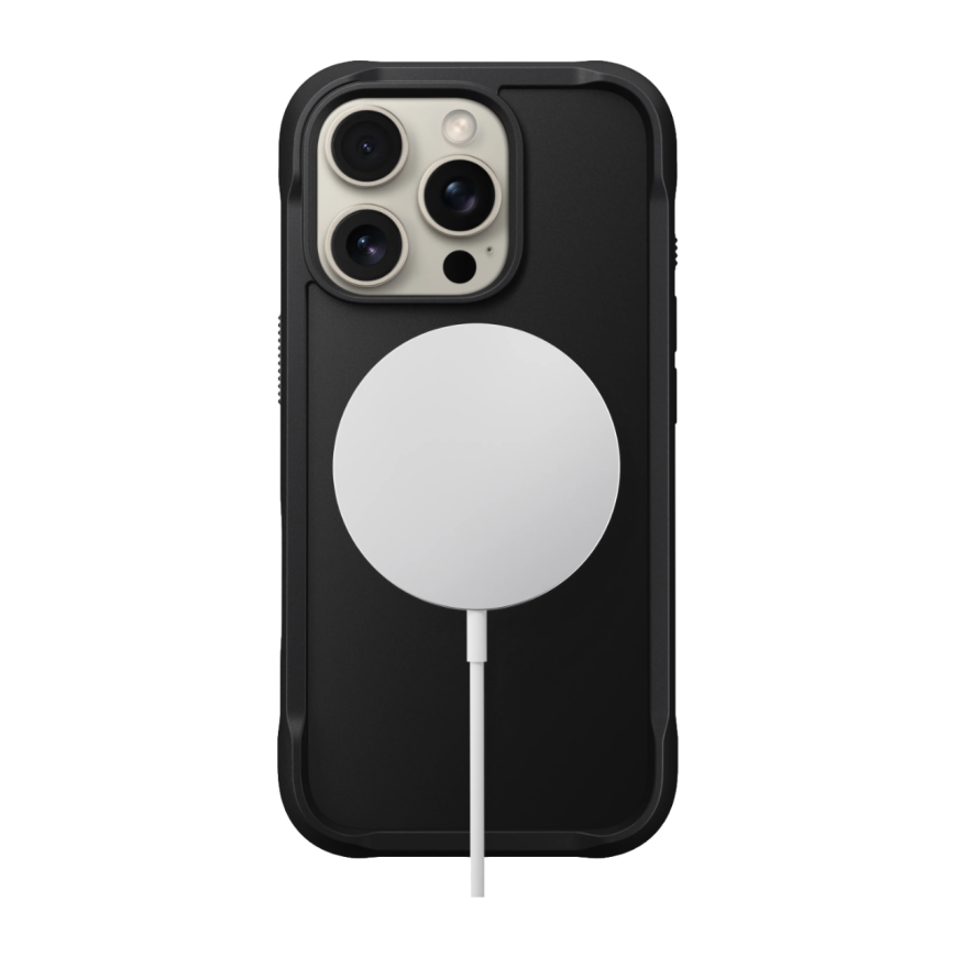 Nomad Rugged Case порадует вас не только надежностью, но и множеством продуманных мелочей. Кнопки выполнены из анодированного алюминия, что не только повышает их долговечность, но и делает каждое нажатие приятным и четким. Приподнятые края вокруг экрана и камеры гарантируют, что смартфон не будет шататься, когда он лежит на столе. А встроенные магниты MagSafe открывают дополнительные возможности: от удобной зарядки до крепления на магнитных держателях в машине. Чехол при этом остается тонким и компактным, визуально не увеличивая размеры смартфона.